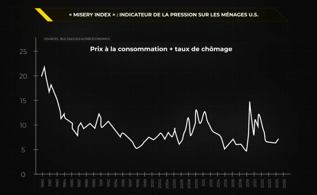 Dans ce contexte, le Misery Index redevient un outil central, car il permet précisément d’évaluer si la croissance américaine peut être portée par la consommation ou si, au contraire, les pressions inflationnistes et les tensions sur l’emploi appellent à davantage de prudence.