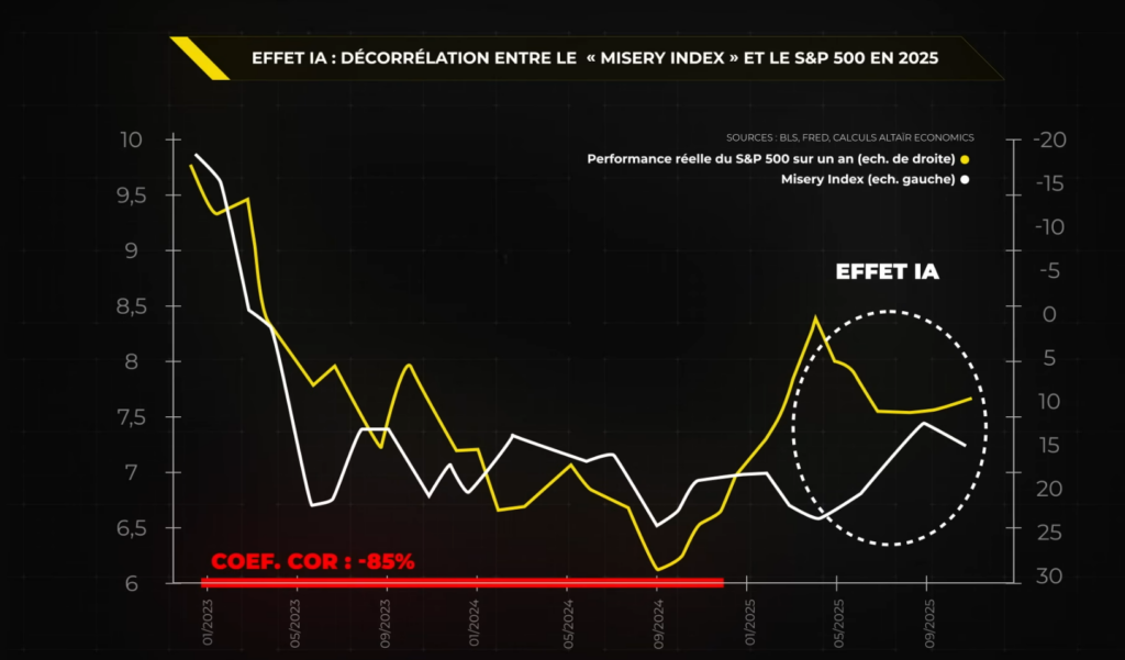 Longtemps utilisé par professionnels de la gestion, le Misery Index avait perdu de sa pertinence en 2025 sous l’effet de la vague IA. Christian Parisot, président d’Altaïr Economics, estime qu’il pourrait redevenir un indicateur central pour anticiper la performance réelle du S&P 500 en 2026.